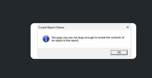 Crystal Report Viewer: The page size was not large enough to format the contents of an object in the report.