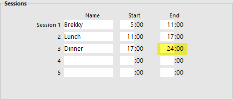 Setup > Global Options > Restaurant > Sessions:
