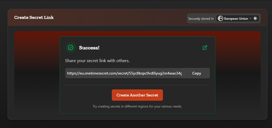 At this step we either continue the setup ourselves for retail sites or pass on the TenantID, API Key and Secret Key to the reseller. This is done via Share Secrets Securely, the reseller should be made aware of the sensitive nature of this information provided to them.